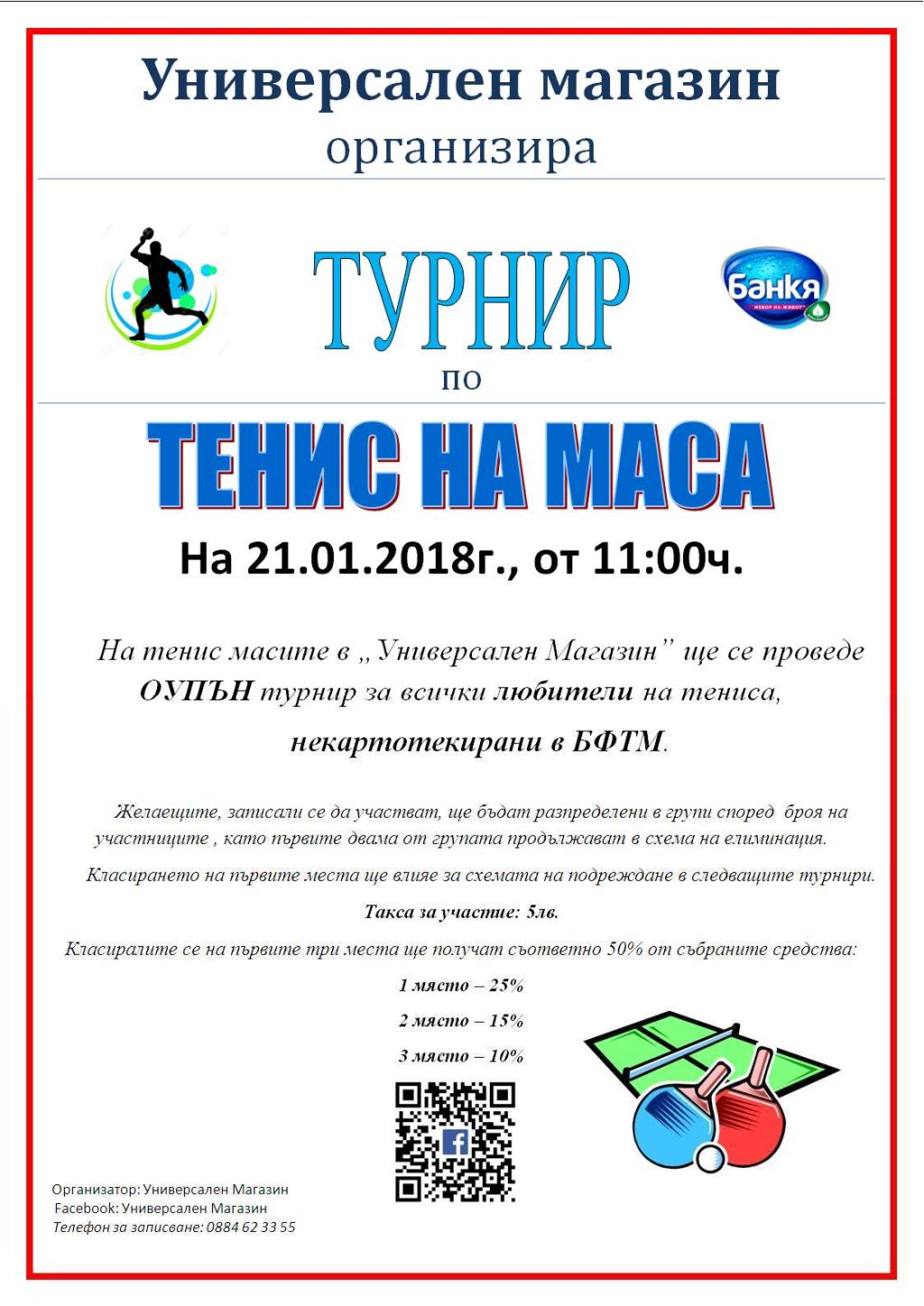 организира ОУПЪН турнир за всички любители, на тениса на маса,